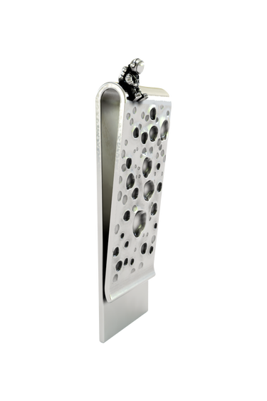 Journey to the stars with our extraordinary Astronaut Moon Money Clip, meticulously crafted in premium 925 sterling silver. This remarkable piece features a detailed astronaut figure perched atop a lunar landscape, complete with authentic crater textures that mirror the moon's mysterious surface. Each crater is hand-finished to create depth and dimension, transforming an everyday accessory into a conversation-starting work of art. The spring-loaded mechanism ensures your bills stay secure while the astronaut keeps eternal watch over your valuables. Perfect for space enthusiasts, dreamers, and anyone who reaches for the stars in their daily pursuits. This money clip bridges the gap between functional elegance and cosmic adventure, making it an ideal gift for graduates, professionals, or collectors who appreciate the marriage of artistry and utility in sterling silver.