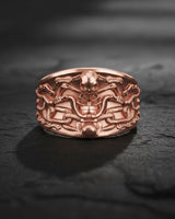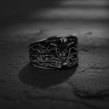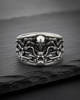 Unleash your rebellious spirit with this striking silver skull chain ring that commands attention wherever you go. This bold biker ring features an intricately detailed skull centerpiece flanked by motorcycle chain links, all expertly crafted from premium 925 sterling silver. The gothic design showcases exceptional metalwork with deep relief details that bring the skull to life, while the chain motifs add authentic motorcycle culture symbolism. Available in both classic sterling silver and luxurious 14K gold vermeil finish, this statement ring appeals to riders, rebels, and anyone embracing alternative style. Perfect for daily wear or special occasions, this skull chain ring combines durability with distinctive design, making it an ideal gift for motorcycle enthusiasts and gothic jewelry collectors seeking authentic craftsmanship.
