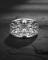 Process: Silver is treated with oxidation to create natural darkening in recessed areas, emphasizing the handcrafted details and giving each piece a vintage, mystical appearance.