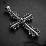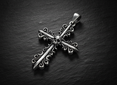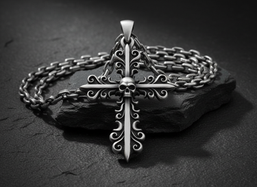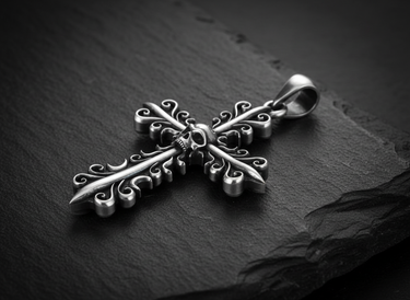 Defy convention with this striking Skull Cross Pendant, where gothic rebellion meets baroque artistry in authentic 925 sterling silver. This bold piece features an intricately detailed skull centered on an ornate cross, with a dramatic sword blade piercing through the vertical axis. Elaborate scrollwork flourishes extend from all four arms, creating a mesmerizing silhouette that captures both darkness and elegance. Each curve and swirl showcases masterful craftsmanship, while the oxidized silver finish adds depth and character to every detail. Available in classic antiqued silver or luxurious gold plating, this substantial pendant speaks to those who embrace their darker side without apology. Perfect for bikers, gothic enthusiasts, and anyone who refuses to follow the crowd. A commanding statement piece that transforms any outfit into a declaration of individuality and fearless style.