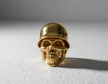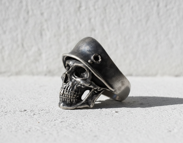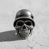 Command attention with this striking soldier skull ring, masterfully crafted in authentic 925 sterling silver. This powerful piece features an intricately detailed skull wearing a classic WWI German Stahlhelm military helmet, complete with period-accurate side emblem. Every anatomical detail has been meticulously sculpted, from the pronounced cheekbones to the perfectly rendered teeth, creating a hauntingly realistic statement piece. Available in both oxidized black silver for a rugged, battle-worn aesthetic or brilliant gold plating for maximum impact. The wide, comfortable band ensures all-day wearability, while the substantial 13-gram weight delivers premium quality you can feel. Perfect for military history enthusiasts, biker culture, gothic style lovers, or anyone who appreciates bold, unapologetic jewelry that tells a story of strength and resilience.