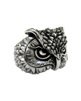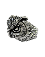 Channel ancient wisdom with this extraordinary 925 sterling silver owl ring. Masterfully sculpted with incredible attention to detail, this captivating piece features a majestic owl with intricately layered feathers that create stunning dimensional depth. The piercing eyes and sharp beak embody the owl's legendary vigilance and intelligence. Each feather is individually crafted, showcasing exceptional artistry in the oxidized finish that highlights every texture. Weighing 13 grams, this substantial ring makes a powerful statement about wisdom and protection. Perfect for nature lovers, spiritual seekers, or anyone drawn to the mystical symbolism of owls. Transform your style with this remarkable fusion of natural beauty and sterling silver craftsmanship.