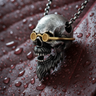 Unleash your rebellious spirit with this extraordinary bearded skull pendant, where vintage aviation meets raw biker attitude. Crafted in premium 925 sterling silver, this masterpiece features a meticulously detailed skull adorned with brass-toned aviator goggles and a flowing beard that speaks to untamed freedom. The oxidized finish creates dramatic depth and shadow, highlighting every intricate detail from the textured facial hair to the menacing grin. This pendant embodies the fearless spirit of riders and adventurers who forge their own path. Whether you're a motorcycle enthusiast, steampunk aficionado, or simply someone who appreciates bold statement jewelry, this piece commands attention and respect. The substantial weight and expert craftsmanship ensure this pendant will become your signature piece, a daily reminder to live life on your own terms.