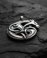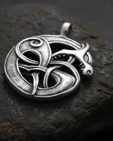 Channel the raw power of Norse mythology with this striking Silver Fenrir Wolf Pendant. Expertly handcrafted from premium 925 sterling silver, this amulet captures the ferocious spirit of Odin's legendary bane in stunning detail. The design features intricate knotwork and swirling textures that bring the mythical wolf to life, forming a seamless circle that symbolizes the eternal cycle of destiny and strength. The dark oxidized finish adds rugged depth to every carved groove, highlighting the artisan craftsmanship synonymous with authentic Viking jewelry. A powerful talisman for those who value independence and resilience, this silver wolf pendant makes a meaningful gift for mythology enthusiasts and modern warriors alike. Whether worn daily as a protective amulet or reserved for special occasions, this statement piece stands as a bold testament to ancient legends, ensuring you carry the spirit of the North wherever you go.