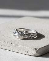 Process: Silver is treated with oxidation to create natural darkening in recessed areas, emphasizing the handcrafted details and giving each piece a vintage, mystical appearance.