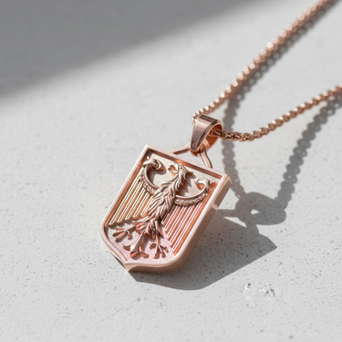 Honor your heritage with this dignified Silver German Eagle Pendant, a symbol of strength and unity. Meticulously handcrafted from premium 925 sterling silver, this pendant features the iconic Bundesadler, the German Federal Eagle, set within a classic shield design. The intricate relief of the eagle is accentuated by a dark oxidized background with detailed vertical striations, creating a striking contrast against the polished silver border. Ideally suited for men who value patriotic symbols and historical significance, this German eagle pendant makes a powerful statement of identity. The meticulous detailing of the feathers and the robust shield shape showcase expert artistry. Whether worn daily as a personal emblem or gifted as a meaningful keepsake for a loved one, its robust construction and timeless design ensure it remains a cherished accessory for years to come.