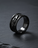 Process: Silver is treated with oxidation to create natural darkening in recessed areas, emphasizing the handcrafted details and giving each piece a vintage, mystical appearance.