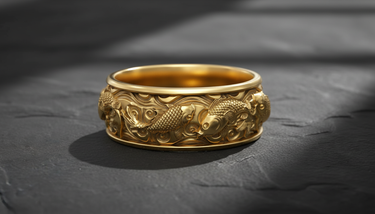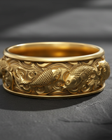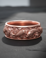 Immerse yourself in a symbol of perseverance and good fortune with this exquisite Silver Koi Fish Ring. Expertly handcrafted from solid 925 sterling silver, this band showcases intricate relief carvings of Japanese koi carp swimming upstream against stylized waves. The detailed design captures the essence of traditional Asian art, with an oxidized finish that adds depth and contrast to the shimmering silver scales. Known for representing strength and determination, the koi fish motif makes this piece a powerful talisman for success. The smooth interior ensures a comfortable fit for everyday wear, while the durable construction promises a lifetime of elegance. Perfect for enthusiasts of Japanese mythology or those seeking a meaningful accessory, this sterling silver ring stands out as a unique statement piece. Elevate your style with a blend of cultural heritage and superior craftsmanship today.