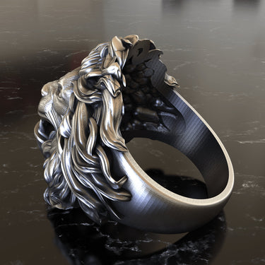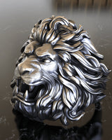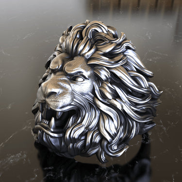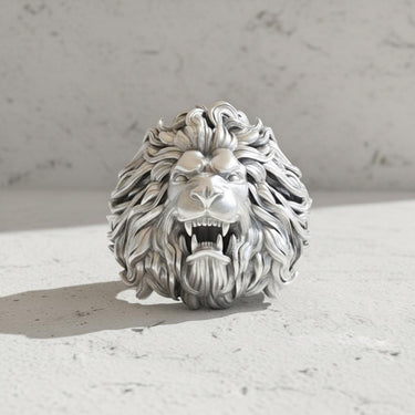 Unleash your inner strength with the definitive symbol of power and courage, our masterfully crafted silver lion ring. This piece captures the raw majesty of the 'King of the Beasts' in stunning detail, from the meticulously sculpted, flowing mane to the intense, roaring expression with bared fangs. Every element is designed to command respect and admiration. Hand-cast from premium, solid 925 sterling silver, this ring features an expertly applied oxidized finish that highlights the intricate textures and adds a sense of timeless depth. Our artisans pour their skill into each limited edition piece, ensuring a unique work of wearable art. More than just jewelry, this bold silver lion ring is a statement of leadership and untamed spirit, perfect for the modern man who values exceptional quality. Wear it as a daily emblem of your authority and confidence.