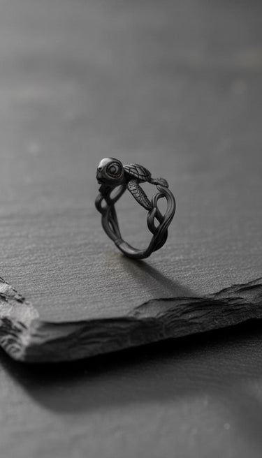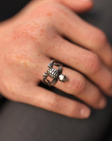 Process: Silver is treated with oxidation to create natural darkening in recessed areas, emphasizing the handcrafted details and giving each piece a vintage, mystical appearance.