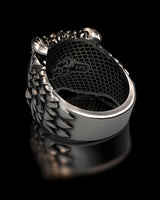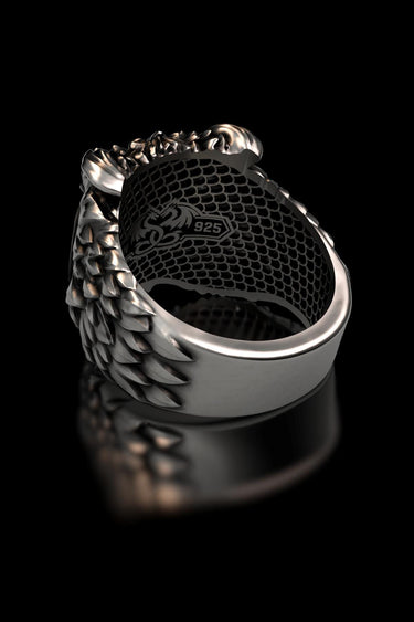 Process: Silver is treated with oxidation to create natural darkening in recessed areas, emphasizing the handcrafted details and giving each piece a vintage, mystical appearance.