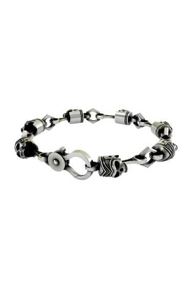 Celebrate true motorcycle heritage with this exceptional piston skull bracelet crafted in premium 925 sterling silver. Authentic engine piston components merge seamlessly with detailed skull motifs, creating the ultimate tribute to biker culture and mechanical artistry. The substantial 22-gram weight for the 6-inch length delivers solid quality that matches your passion for the road. Each piston element features realistic mechanical details while skull accents add rebellious attitude. Available in custom lengths from 6 to 10 inches to fit every rider perfectly. This isn't just jewelry - it's a statement of your love for engines, freedom, and the open road. Perfect for motorcycle enthusiasts who live and breathe horsepower.