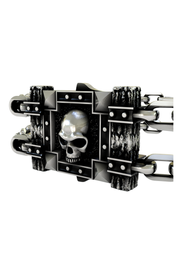 Command absolute respect with this formidable skull fortress bracelet forged in premium 925 sterling silver. Featuring an imposing dual-chain construction with a massive skull centerpiece surrounded by architectural elements, this piece creates an unmatched presence of power and dominance. The substantial 55-gram weight for the 6-inch length ensures exceptional durability and premium feel. Intricate studded details and textured side panels showcase masterful Gothic craftsmanship. Available in custom lengths from 6 to 10 inches for the perfect fortress fit. This isn't just jewelry - it's a declaration of supremacy and Gothic architecture at its finest. For those who demand maximum impact and fortress-level protection.