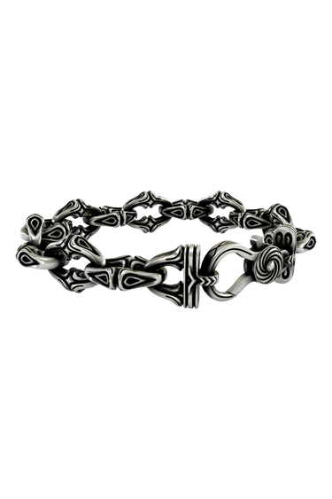 Honor ancient warrior traditions with this magnificent Viking tribal bracelet forged in premium 925 sterling silver. Featuring intricate tribal patterns and Norse-inspired designs, each link showcases masterful artisan craftsmanship reminiscent of ancient Viking metalwork. The substantial 40-gram weight for the 6-inch length delivers exceptional quality that matches the strength of ancient warriors. Flowing organic patterns and tribal motifs create a powerful connection to Nordic heritage and warrior spirit. Available in custom lengths from 6 to 10 inches for perfect tribal fit. This piece bridges ancient craftsmanship with modern precision, making it perfect for those who honor their warrior ancestry and appreciate timeless tribal artistry.