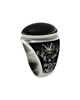 Channel ancient Chinese power with this magnificent imperial dragon ring, masterfully crafted in premium 925 sterling silver. The centerpiece features an intricately detailed Chinese dragon coiled in traditional clouds and waves, symbolizing strength, wisdom, and good fortune. A striking black onyx stone crowns this masterpiece, representing the mystical pearl of power. Every scale, claw, and whisker is meticulously engraved with traditional techniques, creating a mesmerizing display of Eastern artistry. Perfect for those who appreciate Asian culture and dragon mythology, this statement piece embodies the legendary spirit of the celestial dragon. An exceptional fusion of heritage craftsmanship and contemporary luxury.
