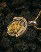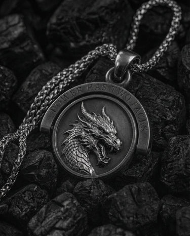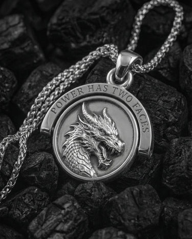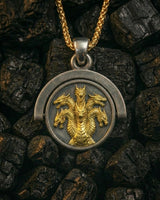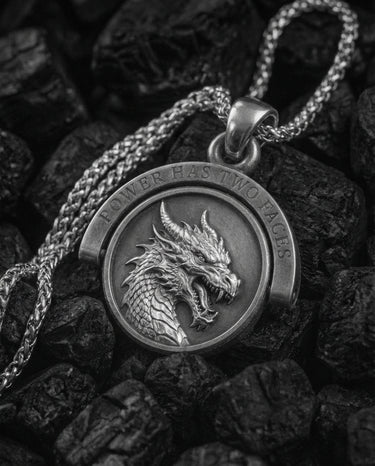Embrace the ancient wisdom of duality with our Dragon rotating pendant, a masterpiece of 925 sterling silver craftsmanship. This extraordinary double-sided medallion features a majestic three-headed golden dragon on one face and a fierce single dragon head on the reverse, united by the powerful inscription "Power Has Two Faces." Inspired by biblical teachings about vigilance and the dual nature of strength, this pendant reminds us that true power demands wisdom and watchfulness. The innovative rotating mechanism allows you to choose which dragon aspect to display, making each wearing experience uniquely personal. Meticulously detailed with contrasting oxidized silver and gleaming gold-tone accents, this statement piece bridges mythology and spirituality in one breathtaking design.