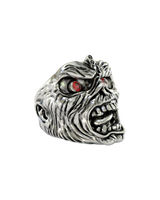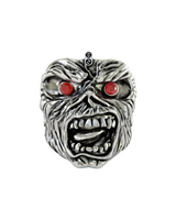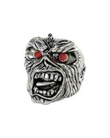 Unleash the beast with this legendary Eddie Maiden Ring, masterfully crafted in premium 925 sterling silver. This powerful tribute captures Iron Maiden's iconic mascot in all his undead glory, featuring his signature maniacal grin, piercing red gemstone eyes, and every grotesque detail that has made Eddie a heavy metal legend since 1980. The oxidized finish enhances the zombie-like texture of his decaying flesh, creating a three-dimensional horror masterpiece. Weighing a substantial 19 grams, this ring commands attention like a front-row seat at a Maiden concert. Whether you're a lifelong metalhead, collector of rock memorabilia, or simply drawn to the dark artistry, this ring embodies the spirit of "Up the Irons!" Perfect for showing your allegiance to one of metal's greatest bands.