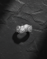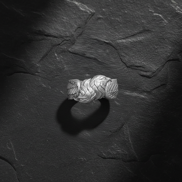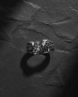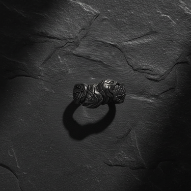 Process: Silver is treated with oxidation to create natural darkening in recessed areas, emphasizing the handcrafted details and giving each piece a vintage, mystical appearance.
