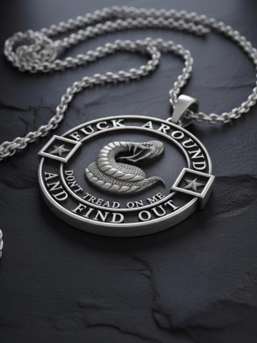 Make a bold patriotic statement with this handcrafted silver Gadsden pendant featuring the iconic coiled rattlesnake and "Don't Tread On Me" motto. This premium 925 sterling silver pendant showcases exceptional detail with meticulously carved snake scales and raised lettering that captures the spirit of American independence. Available in both gold vermeil and classic silver finishes, each piece demonstrates superior craftsmanship with an oxidized background that enhances the dramatic contrast. Perfect for patriots, libertarians, and history enthusiasts, this Gadsden pendant serves as a powerful symbol of freedom and individual rights. Whether worn daily or for special occasions, this sterling silver patriotic jewelry makes an meaningful gift that honors American heritage and personal liberty with timeless elegance.