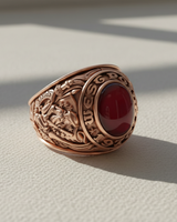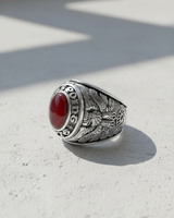 Honor a legacy of leadership and valor with the commanding presence of our Silver West Point Ring. This meticulously detailed piece features the iconic United States Military Academy crest, complete with the helmet of Pallas Athene and sword, set against a backdrop of distinguished emblems. A bold, deep-red oval stone serves as the centerpiece, encircled by the revered 'WEST POINT' and '1976' inscriptions, capturing a moment of pride. Crafted from premium 925 sterling silver, the ring has a substantial feel and a brilliant, lasting luster. Our artisans apply a specialized oxidized finish to accentuate every intricate detail, from the eagle on the shank to the surrounding stars, ensuring the historic symbolism stands out. More than just jewelry, this Silver West Point Ring is a powerful symbol of duty and honor, making it an exceptional heirloom or a meaningful gift for graduates, veterans, and collectors. Wear this testament to unparalleled dedication.