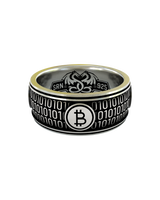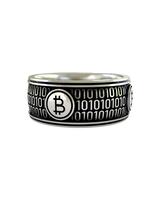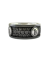 Step into the digital revolution with this groundbreaking Bitcoin Code Ring, expertly crafted in premium 925 sterling silver. The band features an intricate binary code pattern flowing seamlessly around the circumference, punctuated by bold Bitcoin symbols that celebrate the world's most iconic cryptocurrency. This isn't just jewelry – it's a statement of technological innovation and financial freedom. The oxidized finish creates striking contrast against the polished silver, making the binary digits appear to float above the surface. Weighing a substantial 10 grams, this ring combines modern digital aesthetics with traditional craftsmanship. Perfect for crypto enthusiasts, tech professionals, or anyone who appreciates the intersection of technology and style. Wear your passion for blockchain technology with pride.