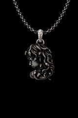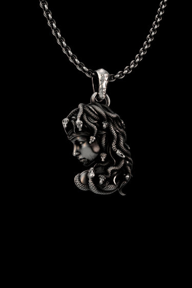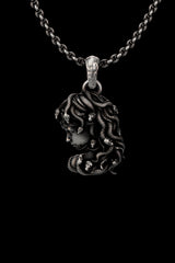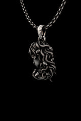 Embrace mythological power with this breathtaking Medusa pendant, masterfully handcrafted in authentic 925 sterling silver. The legendary Gorgon emerges in stunning three-dimensional relief, her serene yet powerful visage crowned with writhing serpents that flow in mesmerizing detail. Every scale on each snake is meticulously carved, creating an intricate tapestry of coiling vipers that cascade from her head in all directions. Enhanced with oxidized finishing, the dramatic depth brings Medusa's mythical presence to life with commanding intensity. In Greek mythology, Medusa represents feminine power, protection, transformation, and the ability to turn enemies to stone with a single gaze. This design celebrates one of mythology's most iconic figures, symbolizing strength, divine punishment, and the duality of beauty and terror. Perfect for mythology enthusiasts, Greek culture lovers, or anyone drawn to powerful feminine symbolism. This substantial pendant becomes a protective talisman embodying ancient power and timeless mystery.