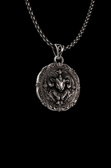 Ignite your inner fire with this powerful Aries zodiac pendant, masterfully handcrafted in authentic 925 sterling silver. The mighty ram's head rises boldly at the center, its majestic curved horns spiraling outward in intricate detail—a perfect embodiment of the Aries warrior spirit. Every strand of wool, every facial feature is meticulously rendered in stunning three-dimensional relief, surrounded by elaborate baroque scrollwork that frames this symbol of leadership and courage. Enhanced with oxidized finishing, the dimensional depth brings the ram to life with dramatic shadow play. Aries (March 21-April 19) represents pioneering energy, fearless determination, and bold initiative—the first sign of the zodiac, forever charging forward with unstoppable passion. Whether you're a proud Aries seeking your power animal, searching for a meaningful birthday gift, or drawn to the ram's symbolism of strength and new beginnings, this substantial medallion becomes a talisman celebrating the courageous trailblazer within.