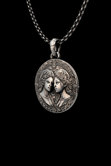 Embrace the duality of your nature with this breathtaking Gemini zodiac pendant, masterfully crafted in authentic 925 sterling silver. Two graceful profiles emerge from elaborate baroque scrollwork, their faces meeting in celestial harmony—a powerful representation of the Gemini spirit of communication, adaptability, and intellectual curiosity. The intricate relief work showcases exceptional artisan craftsmanship, with flowing hair intertwining through ornate filigree borders. Enhanced with oxidized finishing, each detail captures and reflects light beautifully, creating mesmerizing dimensional depth. This substantial medallion pendant celebrates those born under the sign of the Twins (May 21-June 20), making it an ideal birthday gift or personal talisman. Whether you're a proud Gemini or admire the symbolism of duality and balance, this wearable art piece transcends trends to become a treasured heirloom that tells your unique story.