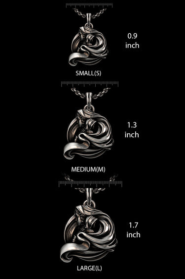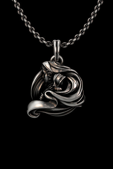 Celebrate the eternal bond between mother and child with this profoundly moving pendant, a masterwork of emotional artistry crafted in premium 925 sterling silver. This touching piece captures the sacred embrace of a parent cradling their child, both figures wrapped in flowing protective robes that symbolize unconditional love and eternal connection. The hooded mother tenderly holds her little one, their souls united in a bond that transcends time and even death itself. Every fold of the flowing fabric has been sculpted with extraordinary detail, creating dimensional depth that brings this intimate moment to life. The oxidized finish enhances the shadows and highlights, adding emotional depth to this powerful representation of parental love. Whether honoring motherhood, remembering a lost child, celebrating a new birth, or simply expressing the unbreakable connection between parent and child, this pendant serves as a meaningful talisman of love's most sacred form—the bond between mother and child that nothing can sever.