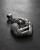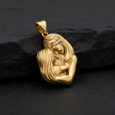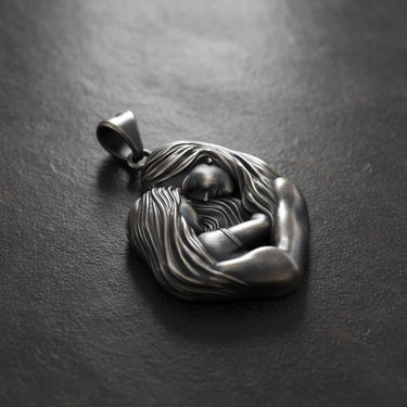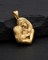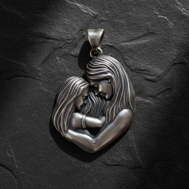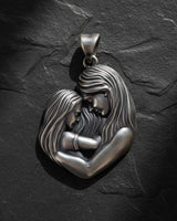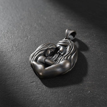 Celebrate the eternal bond between mother and child with this exquisite silver mother child pendant. The tender design captures an intimate embrace, showcasing flowing hair details and loving arms that symbolize protection and unconditional love. Crafted from premium 925 sterling silver, this heartwarming pendant features smooth polished surfaces and intricate sculptural elements that reflect exceptional artisanship. The dimensional design creates beautiful shadows and highlights, making this mother child pendant a meaningful statement piece. Perfect for new mothers, Mother's Day gifts, or celebrating family milestones, this sterling silver charm represents the precious connection that lasts a lifetime. Available in both bright silver and warm gold finishes to complement any jewelry collection.