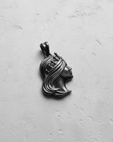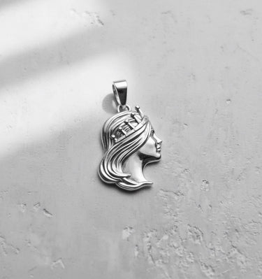 Channel your inner royalty with our artisan-crafted Silver Queen Pendant, a timeless emblem of grace and power. This exquisite piece features a beautifully detailed profile of a queen, complete with a delicate crown and flowing, stylized hair. Each element is meticulously sculpted from solid 925 sterling silver, with an oxidized finish that accentuates the intricate textures and lends a sense of historical depth. This statement necklace is more than just an accessory; it's a piece of wearable art inspired by mythology and classic portraiture. Perfect for both daily wear and special occasions, the Silver Queen Pendant offers a sophisticated touch to any outfit. Whether as a personal totem of strength or a meaningful gift, this masterfully crafted pendant is a celebration of sovereignty and timeless elegance.