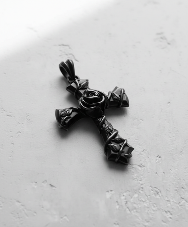 Embrace a profound symbol of faith and beauty with our exquisite silver rose cross pendant. This ornate piece is masterfully crafted from premium 925 sterling silver, featuring a delicate rose in full bloom at its heart. Intricate vines, adorned with finely detailed leaves, gracefully wind their way around the arms of the cross, creating a design that is both romantic and deeply spiritual. The subtle oxidized finish enhances the depth and texture of the floral elements, showcasing the meticulous artistry of our skilled jewelers. Perfect as a statement of belief or a meaningful gift, this unique rose cross pendant blends timeless religious symbolism with elegant, gothic-inspired artistry. Wear this beautiful rose cross pendant to elevate your style with a piece that is not only stunning but also rich in meaning and exceptional craftsmanship.