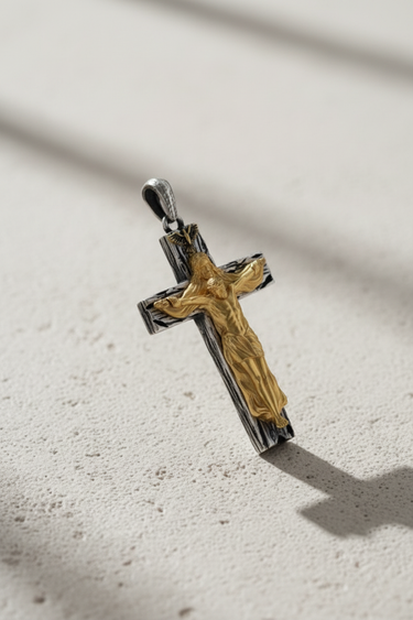 Experience the profound beauty of faith with this exceptional two-tone crucifix pendant, masterfully crafted in premium 925 sterling silver. The striking contrast between the golden Christ figure and the oxidized silver cross creates a powerful visual representation of divine sacrifice and redemption. Each detail, from the wood grain texture of the cross to the flowing robes, has been meticulously sculpted by skilled artisans who understand the sacred significance of this timeless symbol. This pendant serves as both a declaration of faith and a source of daily spiritual strength, making it an ideal gift for confirmations, baptisms, or any moment when faith needs to be celebrated. The substantial weight and premium finish ensure this piece will become a treasured heirloom, carrying its message of hope and salvation through generations.
