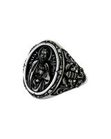 Saint Peter silver ring shown with size reference demonstrating actual dimensions