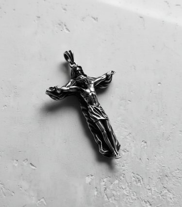 Carry a profound symbol of faith and divine love with our masterfully crafted Silver Crucifix Pendant. This is not merely a piece of jewelry but a powerful artistic representation of devotion, featuring a larger figure embracing the crucified Christ. Every intricate detail, from the sorrowful expression of Jesus to the flowing drapery, is meticulously sculpted by our skilled artisans from the finest 925 sterling silver. The oxidized finish adds a sense of depth and timelessness, highlighting the dramatic textures and emotional weight of this sacred scene. This exceptional Silver Crucifix Pendant serves as a constant reminder of sacrifice and redemption, making it a deeply personal heirloom or a cherished gift for a loved one. Worn close to the heart, it is a statement of unwavering devotion and a testament to exquisite craftsmanship, blending spiritual significance with sophisticated style.