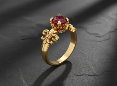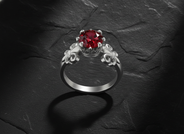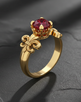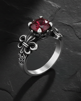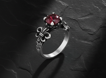 Elevate your style with this exquisite 925 sterling silver fleur-de-lis ring featuring a stunning deep red ruby centerpiece. The ornate crown setting beautifully frames the brilliant faceted gemstone, while the iconic fleur-de-lis shoulder details add timeless French elegance. Masterfully handcrafted from premium sterling silver, this ring showcases exceptional attention to detail in every decorative element. The intricate metalwork creates a perfect balance between vintage sophistication and contemporary luxury. Ideal for special occasions or as a meaningful gift, this fleur-de-lis ring symbolizes nobility and refined taste. Whether worn as a statement piece or paired with other fine jewelry, this sterling silver creation delivers lasting beauty and exceptional craftsmanship that will be treasured for years to come.