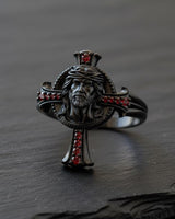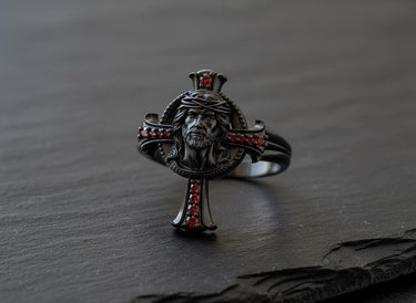Express your faith with this stunning silver Jesus cross ring, featuring an intricately detailed portrait of Christ wearing the crown of thorns. Handcrafted from premium 925 sterling silver, this religious ring showcases exceptional artisanship with deep dimensional relief work and polished finish options. The sacred design incorporates ruby-red gemstone accents along the cross arms, symbolizing Christ's sacrifice and divine love. Available in classic silver, antiqued silver, and rose gold finishes, this Jesus cross ring serves as a powerful symbol of Christian faith. Perfect for daily devotion or special religious occasions, this handcrafted piece makes a meaningful gift for believers seeking to wear their faith with pride and reverence.