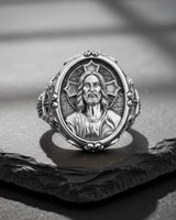 Sterling Silver Jesus Ring - Sacred Portrait Jewelry