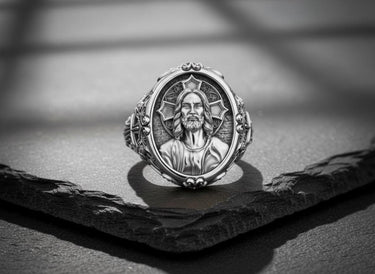 Crafted from genuine 925 sterling silver, this Jesus ring meets the highest quality standards for fine religious jewelry. The oxidized finish provides durability and prevents tarnishing while enhancing the intricate design details. Our premium silver ensures this sacred piece will maintain its beauty for generations, making it a perfect heirloom gift.