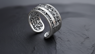 Process: Silver is treated with oxidation to create natural darkening in recessed areas, emphasizing the handcrafted details and giving each piece a vintage, mystical appearance.