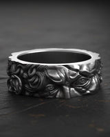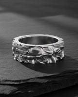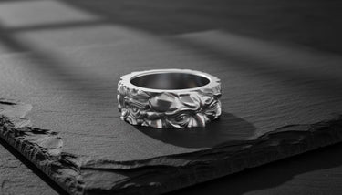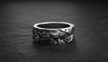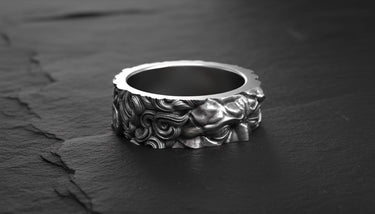 Process: Silver is treated with oxidation to create natural darkening in recessed areas, emphasizing the handcrafted details and giving each piece a vintage, mystical appearance.