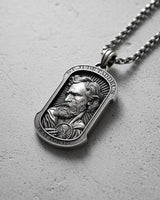 925 sterling silver St. Jude Taddeus pendant with detailed relief on white background showing patron saint design