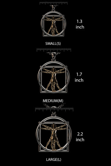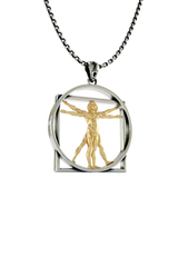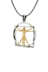 Celebrate the perfect harmony of art and science with this stunning Vitruvian Man pendant. Inspired by Leonardo da Vinci's iconic Renaissance masterpiece, this extraordinary piece captures the essence of human proportion and universal balance. Expertly crafted in premium 925 sterling silver with a luxurious gold-plated figure, the pendant features the famous male figure inscribed within both a circle and square – symbolizing the relationship between humanity and the cosmos. The architectural framework creates stunning depth and dimension, while meticulous detailing brings da Vinci's vision to life. Perfect for art enthusiasts, science lovers, and those who appreciate the intersection of creativity and mathematics, this pendant makes a meaningful statement piece that sparks conversation and admiration wherever worn.