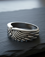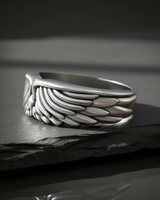 Soar above the ordinary with this exquisite Silver Angel Wing Ring, a powerful symbol of freedom, protection, and spiritual connection. Expertly handcrafted from premium 925 sterling silver, this statement piece features detailed plumage that wraps elegantly around the finger, creating a seamless and comfortable fit. The intricate feather detailing brings exceptional depth and texture to the design, showcasing the dedication of skilled artisans. Ideally suited for biker jewelry enthusiasts and those who appreciate angelic motifs alike, this ring stands out with its bold yet refined aesthetic. Available in a luxurious rose gold plated finish or classic silver, this Silver Angel Wing Ring offers versatility for any personal style. Whether you are searching for a meaningful gift for a loved one or a striking addition to your own jewelry collection, this durable accessory embodies superior craftsmanship. Elevate your daily look with this unique wing band that perfectly balances rugged biker charm with graceful elegance.