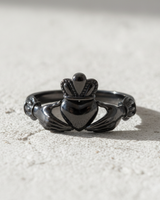 Celebrate eternal love, loyalty, and friendship with this exquisite silver Claddagh ring. Deeply rooted in Irish tradition, this iconic design features two hands clasping a crowned heart, representing the powerful bond of friendship, love, and unwavering loyalty. Expertly handcrafted from premium 925 sterling silver, this ring showcases intricate detailing enhanced by a dark oxidized finish that adds vintage depth and character to the relief work. The smooth, polished inner band ensures a comfortable fit for daily wear, making it a perfect promise ring, wedding band, or a meaningful gift for a cherished friend. Whether worn to represent your relationship status or as a stylish nod to Celtic heritage, this silver Claddagh ring is a timeless piece of jewelry that transcends trends. Its durable construction and profound symbolism make it a treasured addition to any jewelry collection, effortlessly blending historical significance with modern artisan craftsmanship.
