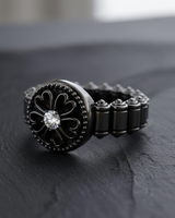 Discover the perfect blend of mechanical precision and natural beauty with this handcrafted 925 sterling silver clover ring. Expertly forged from high-quality materials, this piece features a unique band designed to resemble a classic watch bracelet, adding an industrial edge to a sophisticated accessory. The focal point is a detailed four-leaf clover, highlighted with rich gold plating and set against a textured, oxidized background for striking depth. Centered with a brilliant sparkling stone, this silver clover ring serves as a powerful talisman of luck and fortune. The bezel is finished with intricate milgrain detailing, showcasing the dedication of our skilled artisans. Ideal for those who appreciate symbolic jewelry with a modern twist, this durable ring makes an exceptional gift or a signature addition to your own collection, promising style and quality that lasts a lifetime.