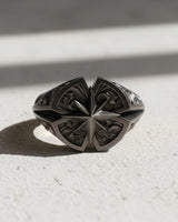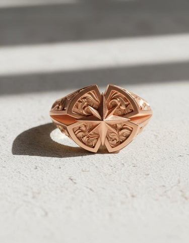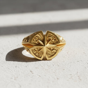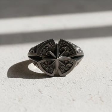 Chart your own course with this masterfully crafted Silver Compass Ring, a symbol of guidance and adventure. The face features a bold North Star, a timeless navigational aid, surrounded by four quadrants filled with intricate, swirling engravings that evoke the spirit of exploration. Every detail is brought to life through a meticulous oxidized finish on solid 925 sterling silver, creating a stunning interplay of light and shadow that highlights the superior craftsmanship. This ring is more than just jewelry; it's a statement of purpose and a companion for the modern traveler. Whether as a personal talisman or a meaningful gift for someone embarking on a new journey, this unique Silver Compass Ring serves as a constant reminder to stay true to your path. Its robust signet design ensures it's a durable and stylish piece for everyday wear, promising a lifetime of journeys.