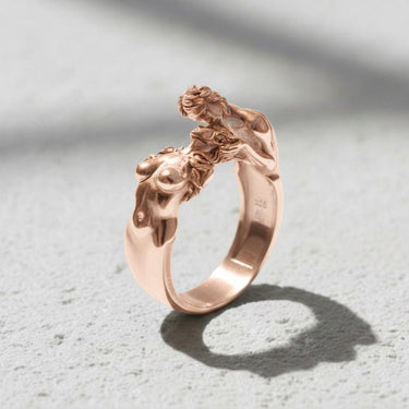 Celebrate eternal love with this exquisite 925 sterling silver lovers ring featuring two intimate figures in a passionate embrace. This romantic silver ring showcases masterful artisanship with intricate anatomical details and flowing forms that symbolize unity and devotion. Each figure is carefully sculpted to capture the tenderness of true love, creating a meaningful piece that tells a story of connection. The premium sterling silver construction ensures durability while maintaining the delicate beauty of this unique design. Perfect for couples, anniversaries, or as a thoughtful gift expressing deep affection, this handcrafted lovers ring transforms sentiment into wearable art. The oxidized finish adds depth and character, making this romantic jewelry piece a timeless symbol of passionate love and commitment.