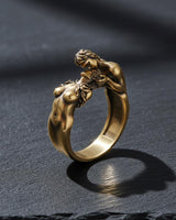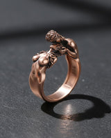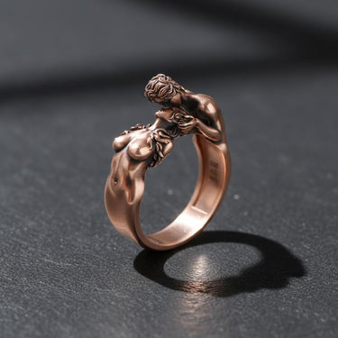 Celebrate eternal love with this exquisite 925 sterling silver lovers ring featuring two intimate figures in a passionate embrace. This romantic silver ring showcases masterful artisanship with intricate anatomical details and flowing forms that symbolize unity and devotion. Each figure is carefully sculpted to capture the tenderness of true love, creating a meaningful piece that tells a story of connection. The premium sterling silver construction ensures durability while maintaining the delicate beauty of this unique design. Perfect for couples, anniversaries, or as a thoughtful gift expressing deep affection, this handcrafted lovers ring transforms sentiment into wearable art. The oxidized finish adds depth and character, making this romantic jewelry piece a timeless symbol of passionate love and commitment.