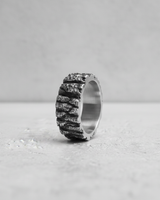 Capture the untamed spirit of the highlands with our handcrafted Silver Mountain Ring. This exceptional piece draws inspiration from rugged landscapes, featuring a deeply textured, craggy surface that mimics a rocky cliff face. Each groove and irregular edge is meticulously sculpted by our artisans, creating a truly organic and naturalistic design that feels raw and authentic. Forged from premium 925 sterling silver, the ring offers a comfortable fit with its smooth, polished interior, contrasting beautifully with its wild exterior. This unique band serves as a powerful symbol of strength and resilience, making it a perfect statement accessory for the modern adventurer or a distinctive wedding band. Embrace the raw beauty of nature and wear a piece of the wilderness with this remarkable Silver Mountain Ring.